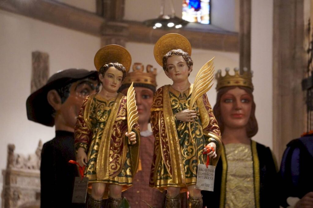 Tras el saludo del obispo, ha habido un momento de diversión para los niños al hacer su aparición cuatro de los gigantes de la ciudad de Alcalá de Henares acompañados por el órgano, que interpretaba Liudmila Matsyura. A continuación, ha tenido lugar la procesión de las imágenes de los Santos Niños Justo y Pastor, que fueron colocadas a un lado del presbiterio.