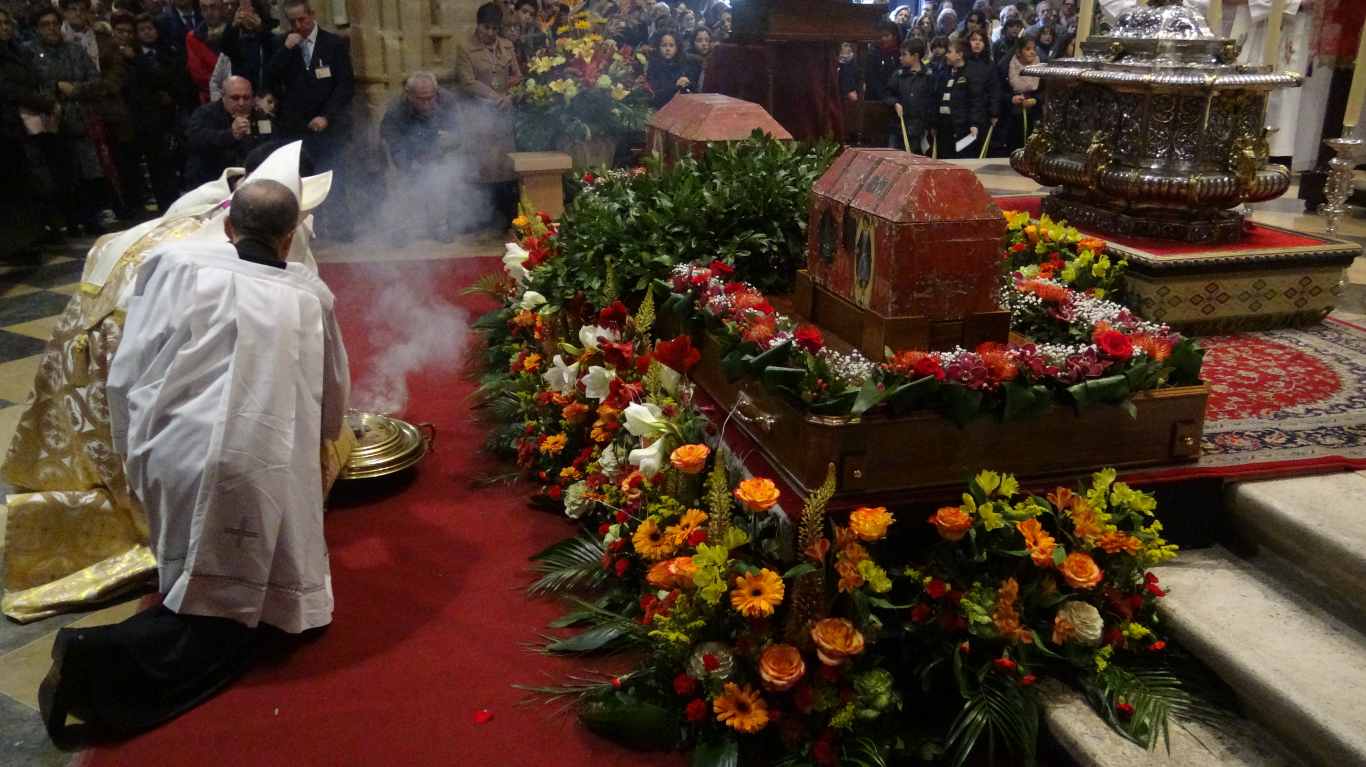Las otras dos urnas que hoy han llegado hasta la catedral se conservan en dos arcas de madera que hoy han ocupado un lugar destacado en el altar de la catedral.