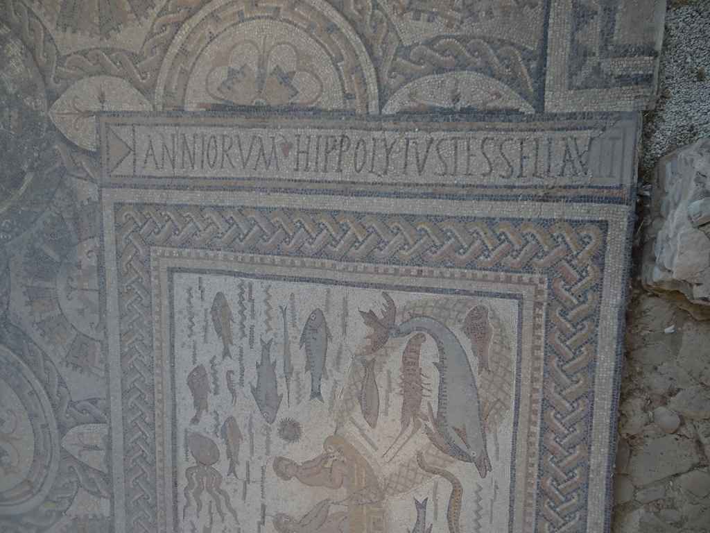 La otra gran joya de la Casa de Hippolytus es el mosaico del maestro Hippolytus, un artista probablemente de origen norteafricano. Se emplaza en el patio central donde estaba el frigidarium, o la piscina de agua fría. En él se representa una barca con tres remeros, rodeada de un gran número de peces y moluscos mediterráneos, como el pulpo, morenas, delfines, el erizo de mar, el cabracho y otros. Era un elemento didáctico muy importante, pues no hay que olvidar que los alumnos vivían muy lejos del mar, en plena meseta.