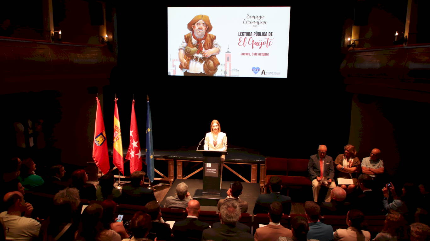 En esta ocasión, Ana Orozco ha sido además reconocida con el Premio Ciudad de Alcalá a los Valores Cívicos Arsenio López Huerta 2025, un galardón que distingue su compromiso con la promoción de la cultura y la convivencia. “Su voz será la primera en dar vida, una vez más, a las palabras del genio alcalaíno”, anunció Alonso entre aplausos del público.