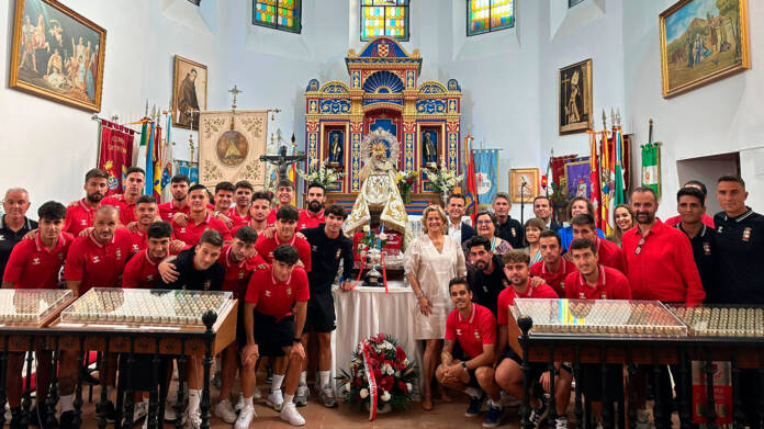 En la Ermita de la patrona se llevó a cabo una ceremonia donde asistieron los jugadores del primer equipo masculino, directivos y técnicos de la RSD Alcalá, así como peñistas y aficionados del club rojillo.