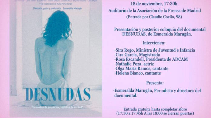 El documental ‘Desnudas’ de Esmeralda Marugán y su posterior coloquio tendrán lugar el próximo viernes, 19 de diciembre, a las 18:00 horas, en el Laboratorio de Creación Alcalá del Centro Sociocultural Gilitos.