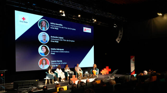 El público ha podido conocer de primera mano el funcionamiento del programa de empleo de la institución a partir del testimonio personal de una participante del Plan de Empleo, un voluntario del área, la experiencia de una empresa colaboradora y el rol desempeñado por las técnicas de empleo de Cruz Roja.