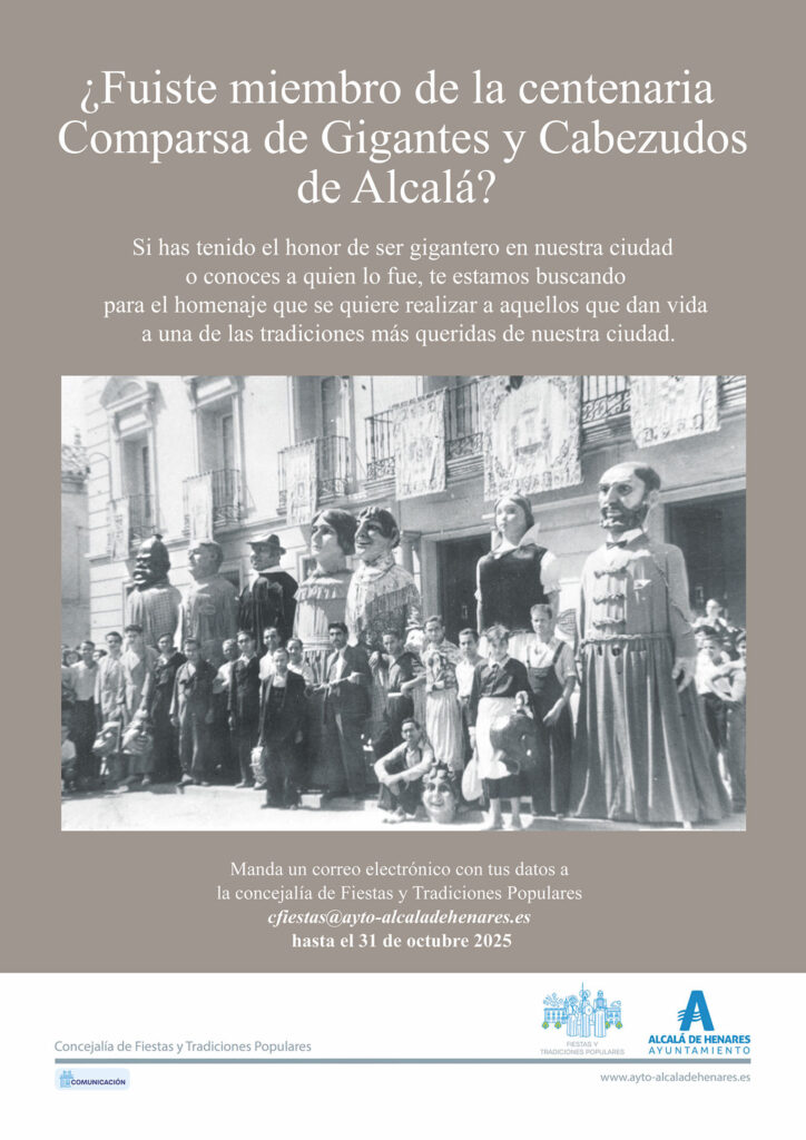 En este caso, el Ayuntamiento de Alcalá de Henares, a través de la concejalía de Fiestas y Tradiciones Populares, ha puesto en marcha la iniciativa ‘¿Fuiste miembro de la centenaria Comparsa de Gigantes y Cabezudos de Alcalá?’.