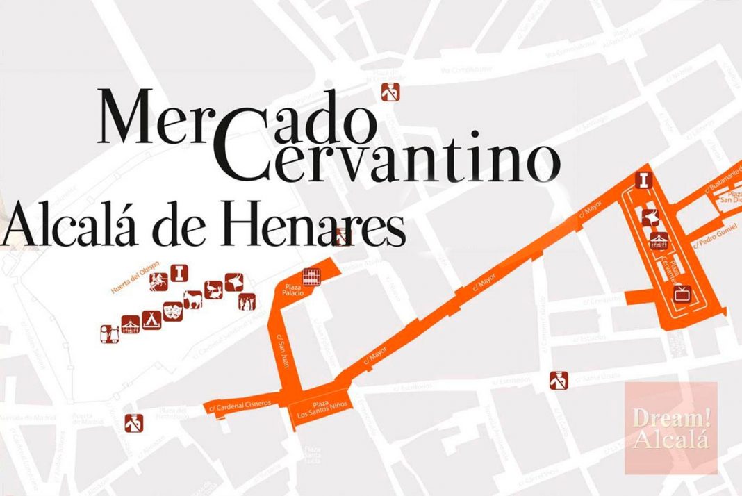 El Mercado Cervantino de Alcalá de Henares se ubica en el casco histórico de la ciudad de Cervantes, y se divide en tres zonas: