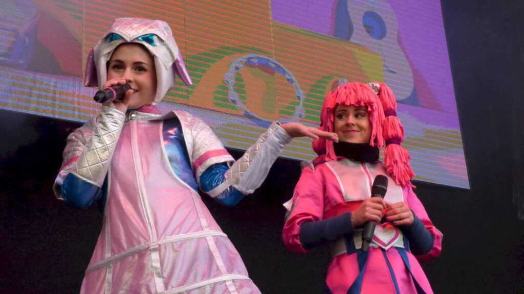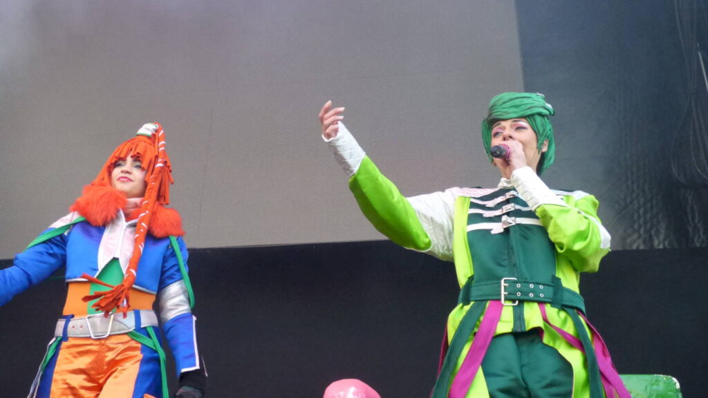 Como el pasado año, han sido las componentes de La banda de la Rima quienes han explicado a los niños no solo como tenían que comerse las chuches de las preúvas, sino también de cantar las 12 campanadas tras la cuenta atrás que mostraba la gran pantalla del escenario.