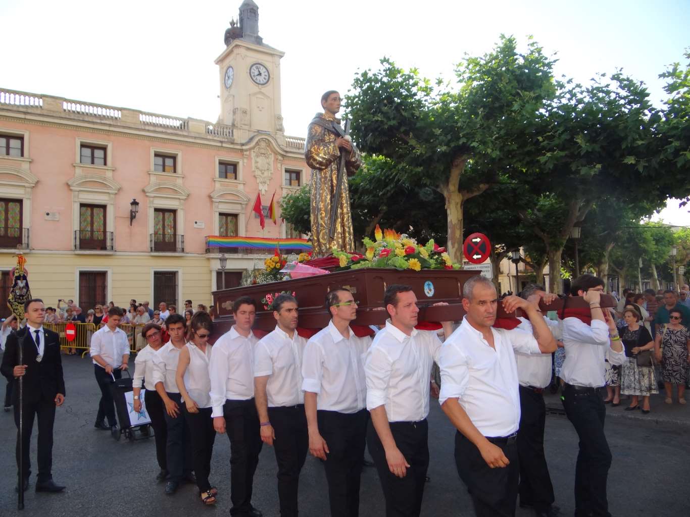 El público esperó hasta la hora de salida, pero una vez abiertas las puertas de la Santa e Insigne, cuando se sumaron quienes habían asistido a las vísperas solemnes, la calle era un hervidero de gente con ganas de ver el paso del Santísimo. Detrás del cuerpo de Cristo pasaban las autoridades eclesiásticas, con el obispo Monseñor Reig Plá a la cabeza, y tras ellos las políticas con representantes del Partido Popular y Ciudadanos. Cerraba la comitiva la Agrupación Musical Jesús de Medinaceli.