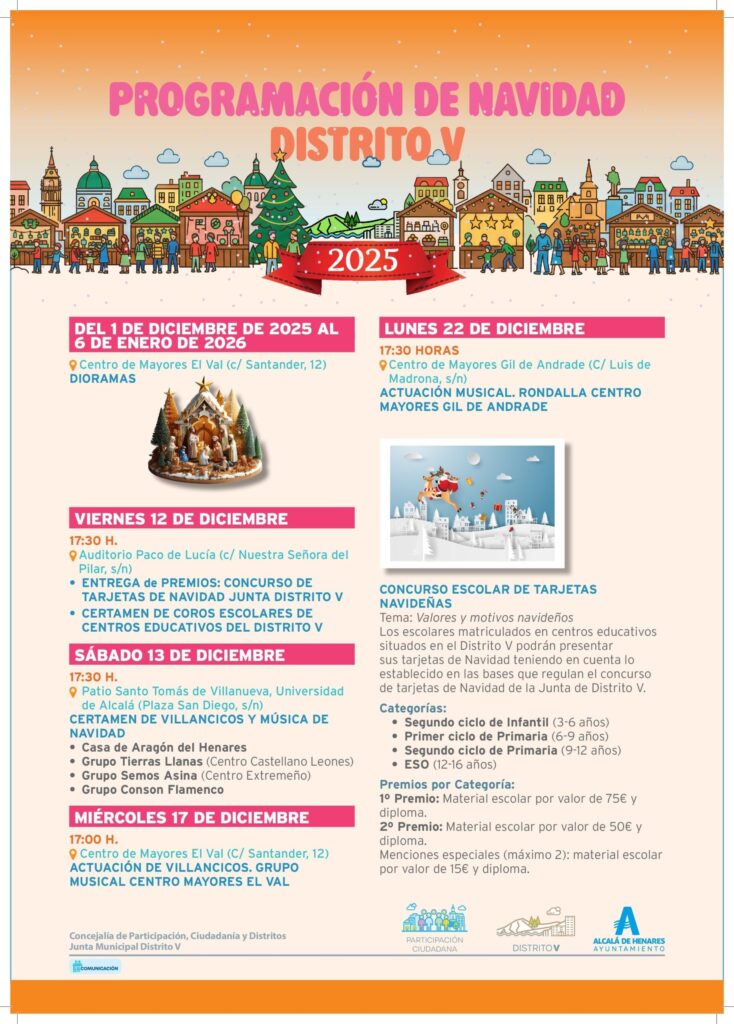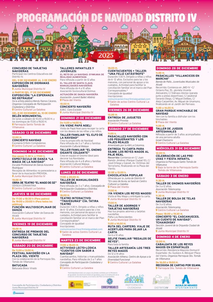 Esta Navidad todos los distritos de Alcalá han preparado diversas actividades para todos los públicos y de carácter familiar. Desde los tradicionales concursos de tarjetas navideñas o recitales, pasando por talleres o las visitas de los pajes de SS.MM Los Reyes Magos, hasta concursos de robótica o mercadillos solidarios que se suman a la programación de Navidad 2025 de Alcalá de Henares.