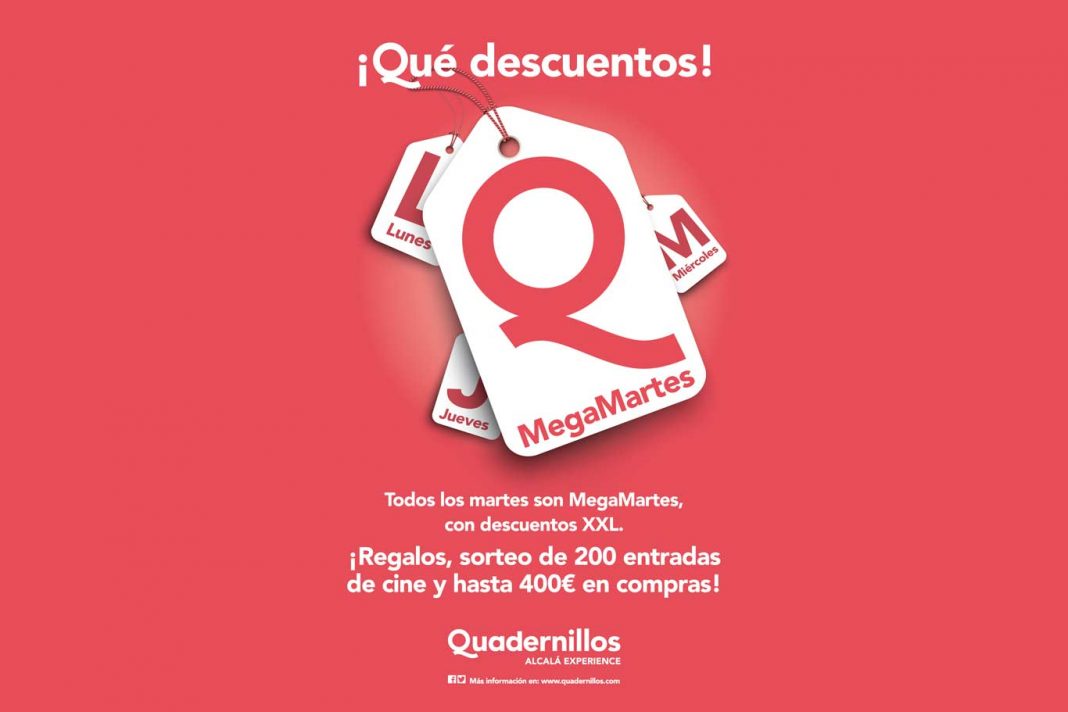 Desde el día 10 al 31 de octubre, todos los próximos martes se convertirán en MegaMartes en Quadernillos (el centro comercial de Alcalá de Henares propiedad del gestor europeo de inversión y promoción inmobiliaria Temprano Capital Partners, gestionado por Cushman & Wakefield y comercializado por ERV Consulting).
