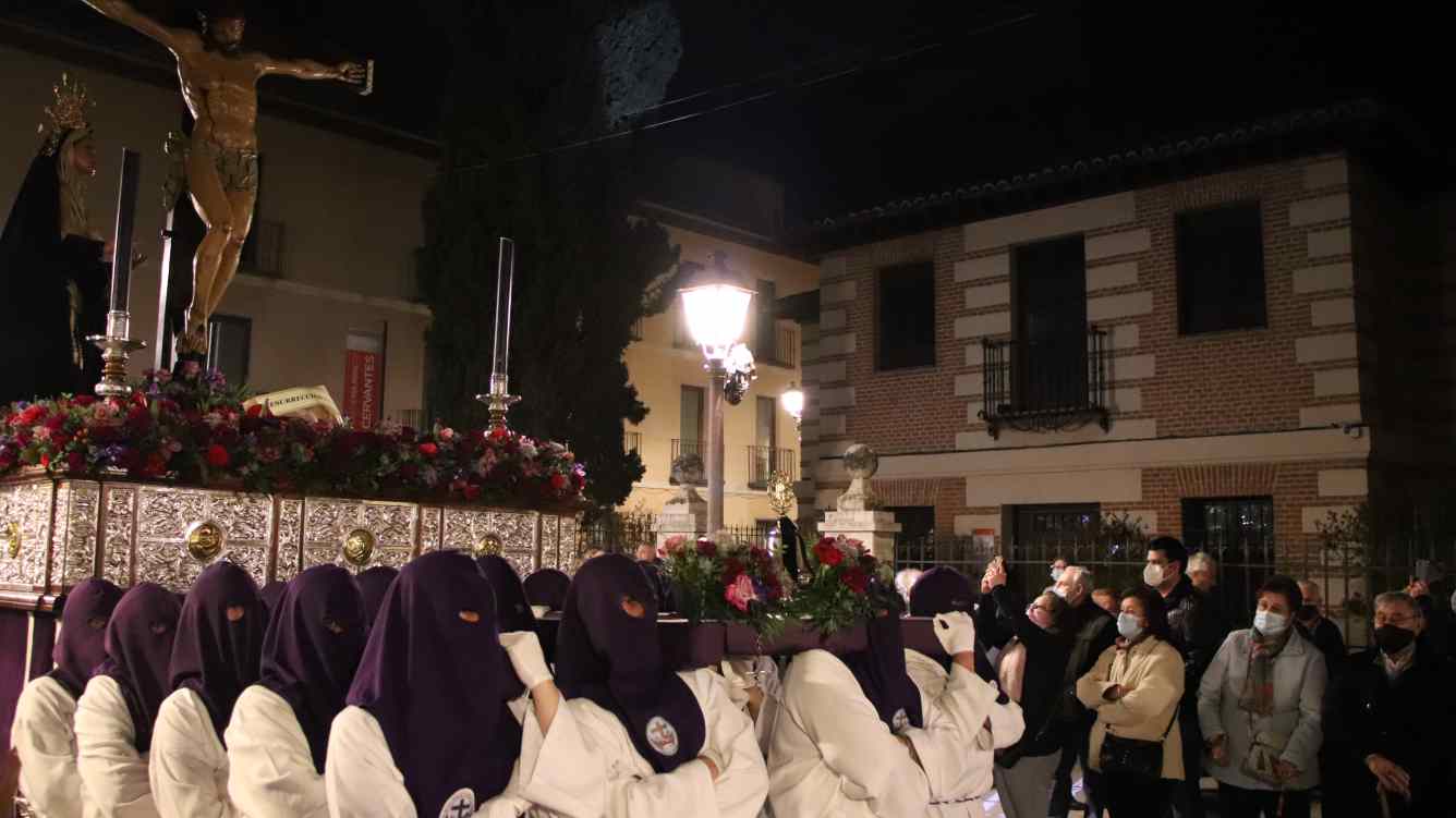 Tras la salida de la procesión del Cristo Atado a la Columna y María Santísima de las Lágrimas y del Consuelo, que abandonó el Convento de Imagen unos minutos antes, y una vez disipadas definitivamente las dudas de lluvia (a media tarde cayeron unas gotas que por un momento hicieron temer lo peor), salía la segunda de las procesiones del Miércoles Santo de Alcalá de Henares.