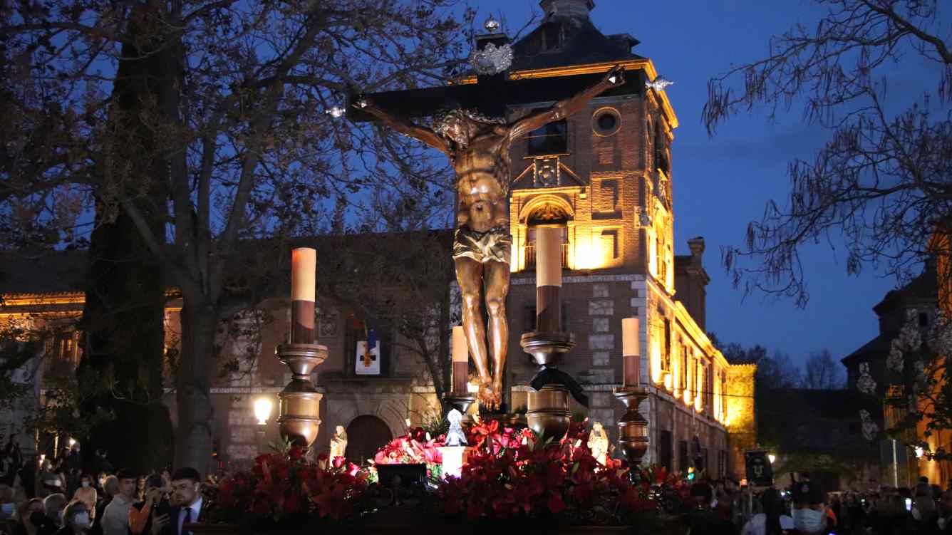 La Semana Santa Alcalá de Henares entra de lleno en sus días de máximo apogeo. Este Jueves Santo ha sido una jornada protagonizada por dos procesiones de gran renombre: la de Medinaceli a las 19 horas y la del Cristo de los Doctrinos a las 21:30.