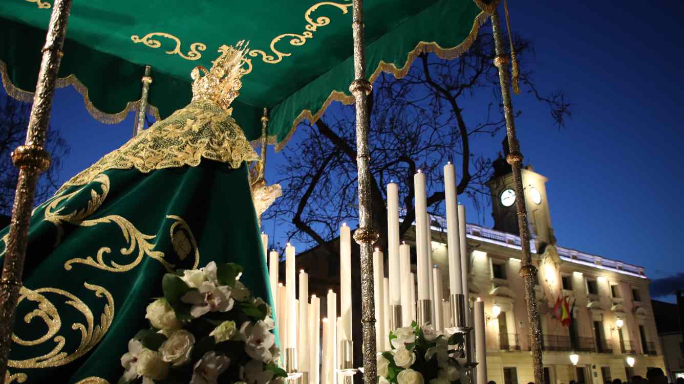 La imagen de Nuestra Sra. de la Esperanza tallada en madera por el imaginero madrileño Justo Garrido se incorpora a la cofradía en 1945. Procesiona en paso de palio con manto verde bordado en oro.