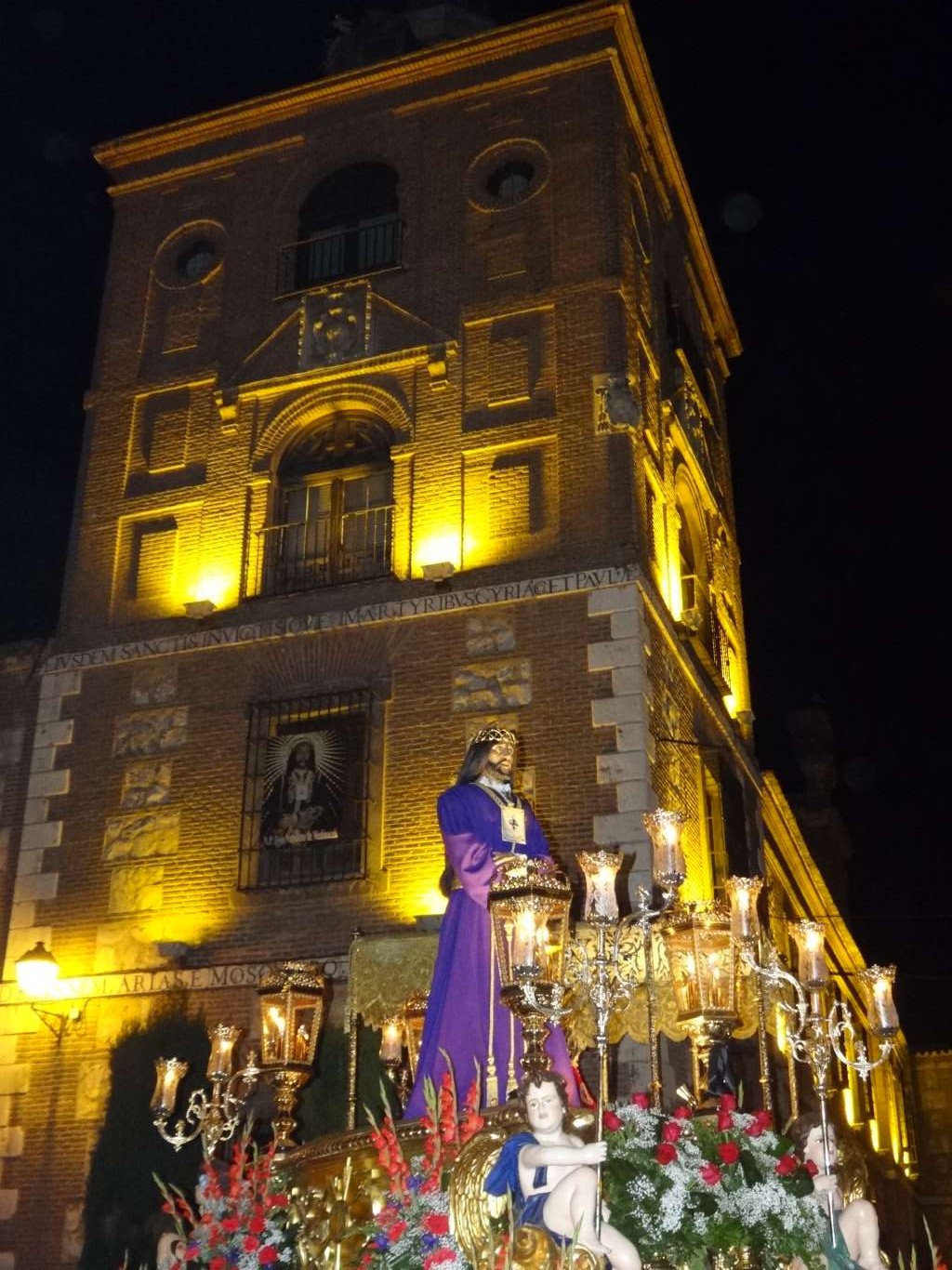 La Agrupación Musical Jesús de Medinaceli de Alcalá de Henares, perteneciente a la propia hermandad, cerraba un desfile que volvió a salir del Colegio de Málaga para irse por la Plaza de Cervantes hasta San Diego y entrar por la Puerta de los Mártires para cruzar Libreros. De allí por la angosta Nebrija hasta Santiago y después Cervantes, Ramón y Cajal y Cerrajeros para volver a la Plaza principal de Alcalá. El Colegio de Málaga les esperaba con el portón abierto para dar merecido descanso al Nazareno.