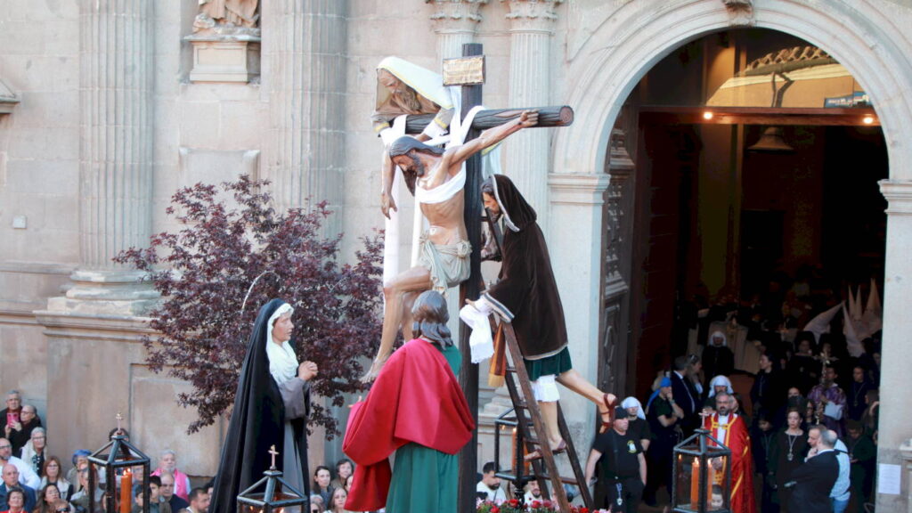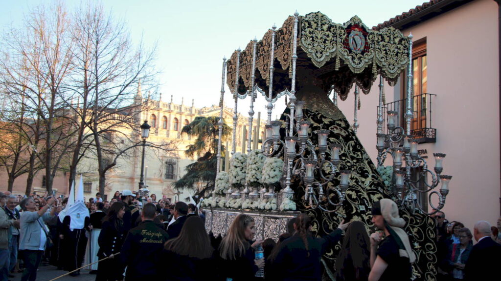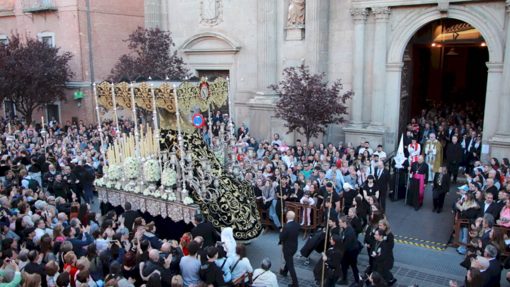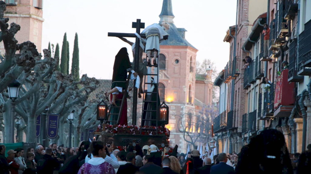 La Soledad Coronada y El Sagrado Descendimiento salían de Santa María la Mayor ante la expectación de un público devoto en fe, pero también en cultura y tradición. El acompañamiento musical en esta ocasión corrió a cargo de la Capilla Musical Sagrado Descendimiento y la Banda de Palio de Juventudes Musicales de Alcalá.