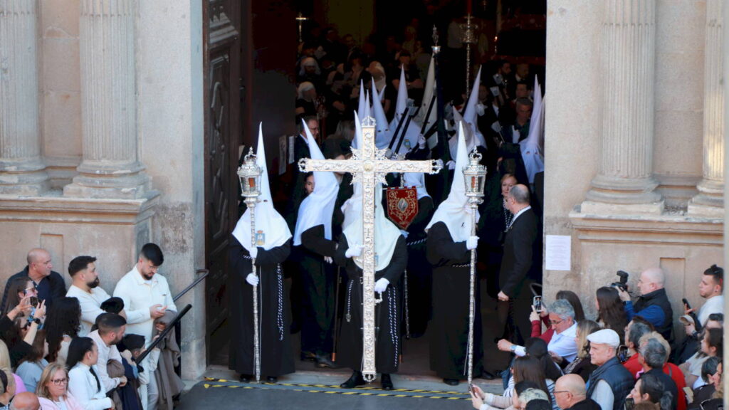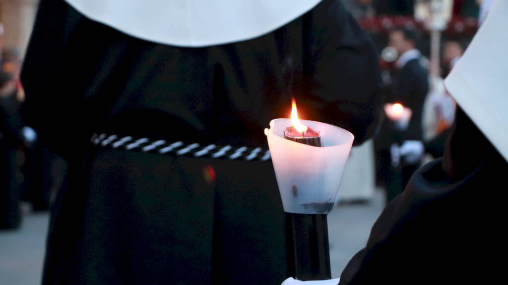 VESTIMENTA: Hábito negro y antifaz blanco con cíngulo blanco y negro. Calzado negro y medalla de la hermandad