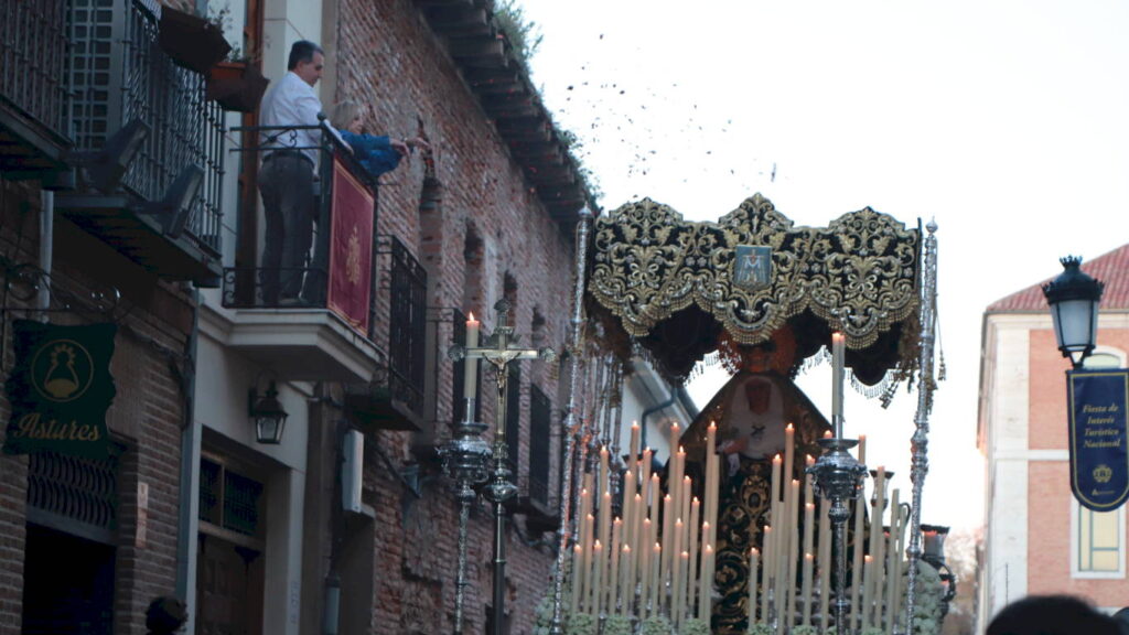 Desde el balcón cedido por La Cueva de Antolín, al que agradecemos haber podido disfrutar un año más de unas vistas privilegiadas, fuimos testigos de una salida impecable de la Iglesia de Santa María la Mayor de la calle Libreros.