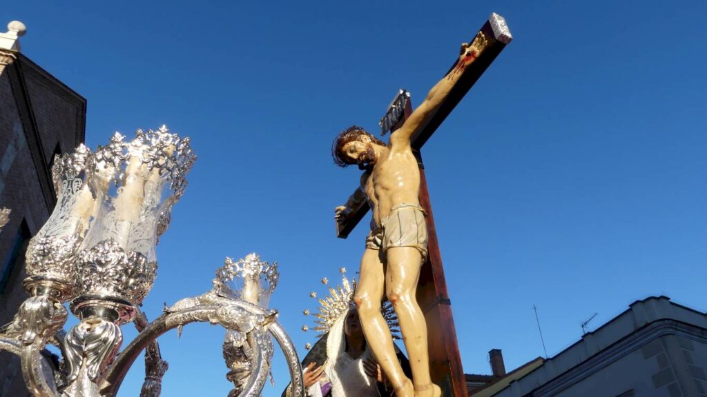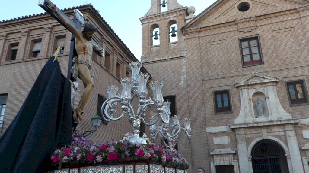 La imagen del Crucificado es una talla de madera policro­mada anónima de finales del s. XVII, con toda probabilidad procedente de un convento franciscano derruido de Calatayud.