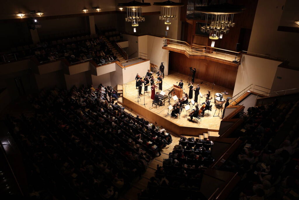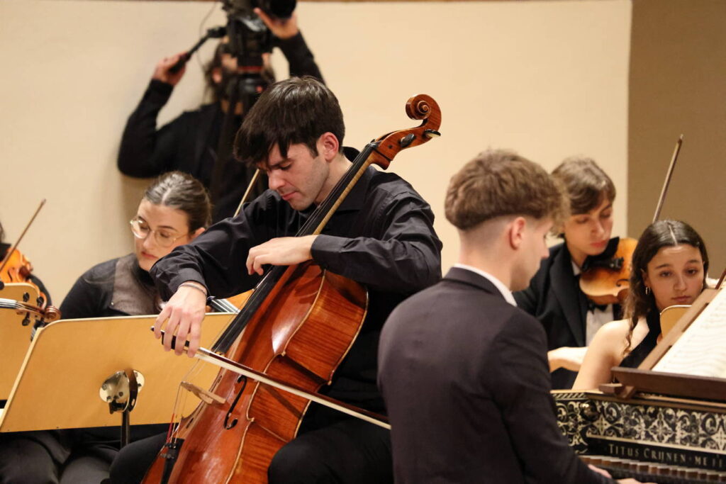 La velada se abrió con Las cuatro estaciones de Antonio Vivaldi, interpretadas por la violinista solista Olaya Salas. La joven ejecutó los cuatro conciertos con gran virtuosismo y sensibilidad, acompañada por la orquesta de cámara y un bajo continuo formado por clave, órgano y archilaúd, recreando con fidelidad la estética sonora del Barroco y transportando al público a la atmósfera original de la obra.