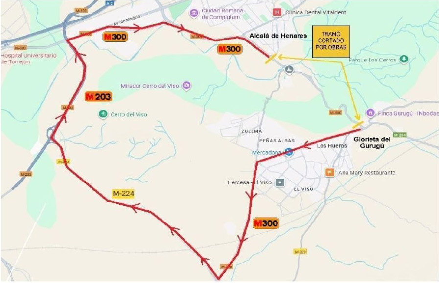 Por último, la Comunidad de Madrid está llevando a cabo trabajos de mejora del Puente del Zulema que suponen el corte temporal de la M-300 a su paso por Alcalá a su paso sobre el río Henares desde el pasado 6 de octubre. Se estima que el corte al tráfico se prolongará aproximadamente cinco semanas.