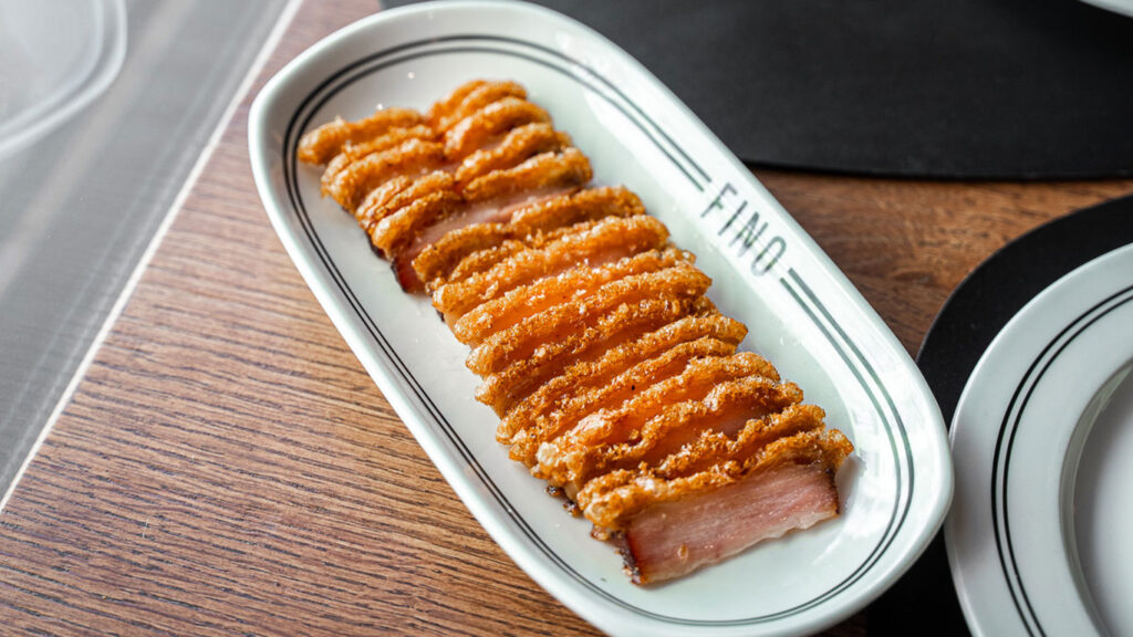 A diferencia del tradicional torrezno soriano, en Fino Bar Restaurante han desarrollado una técnica propia que realza el sabor y la textura de este icónico manjar. La clave está en el proceso de cocción: en lugar de freírlo, se envasa al vacío y se cocina.