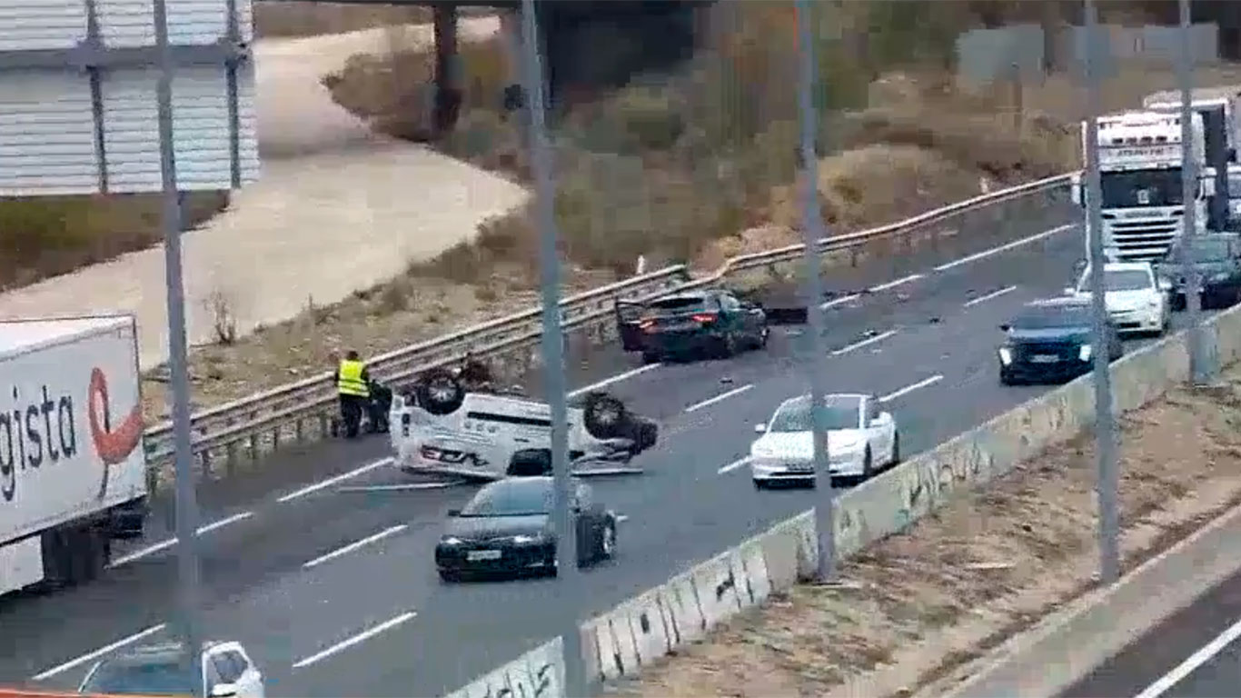 Poco después del accidente, el tráfico de los carriles derecho y central estaba cortado por la presencia de dos turismos accidentados, uno de ellos volcado y un camión detenido en la vía, lo que ha provocado el desvío del resto de la circulación.
